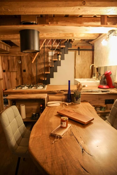 Un espace extérieur avec table et barbecue vous permettra de passer de magnifiques soirées sous les étoiles ou de profiter de la vue exceptionnelle sur la Vallée et les Alpes, quand la météo le permet