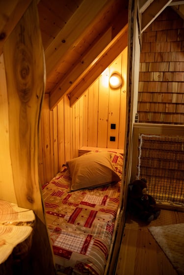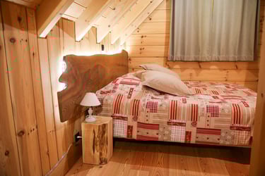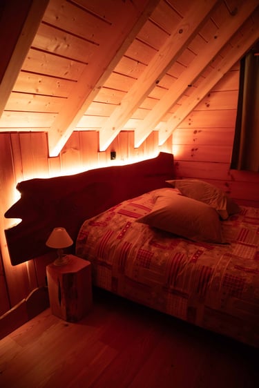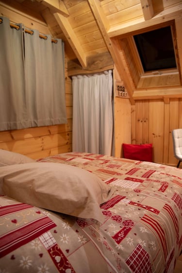 A l'étage, la chambre avec un lit double de 160 cm (2*80) et un lit en alcôve (80 cm)